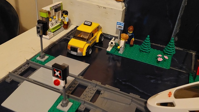 And you can't really tell, but the "crossing" here is actually built from parts I got from BrickLink. (The "real" crossing is with the rest of the passenger train's tracks and "mini station".)