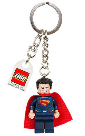 Superman Dark Blue Suit Key Chain (movie version) with Lego Logo Tile, Modified 3 x 2 Curved with Hole