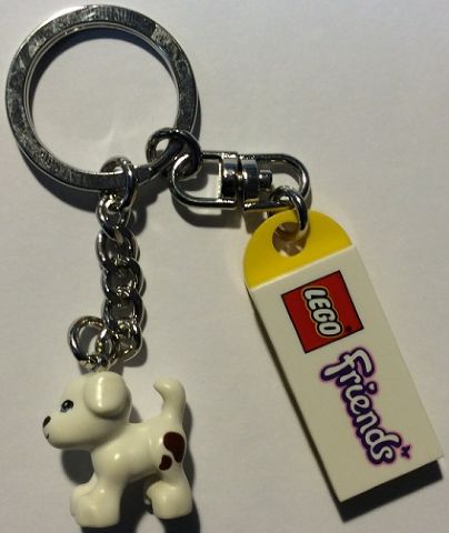 Friends White Dog with Brown Spots Key Chain with Plate, Modified 2 x 3 with Hole and Tile 2 x 4 with Friends Pattern