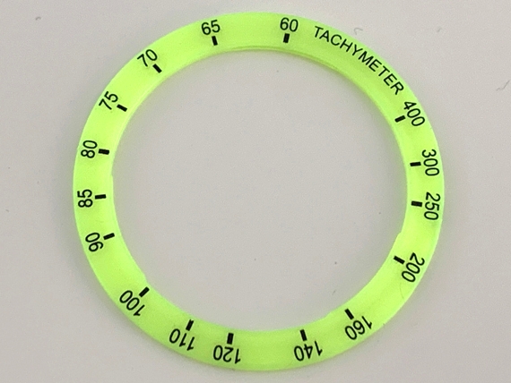 Watch Part, Case Attachment - Bezel Ring Wide with Black 'TACHYMETER', Numbers, and Tick Marks Pattern
