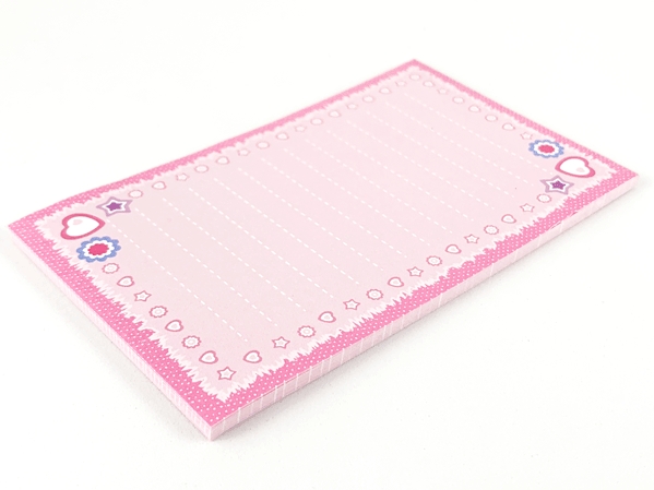 Memo Pad Clikits - Hearts, Stars and Flowers on Pink Background with Dark Pink Border (25 Sheets)
