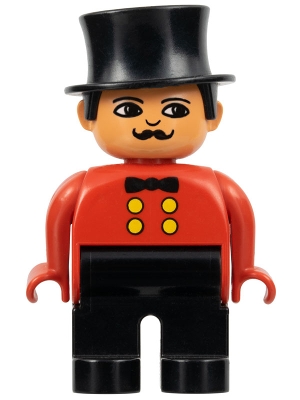 Duplo Figure, Male, Black Legs, Red Top, Top Hat (Circus Ringmaster)
