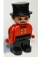 Duplo Figure, Male, Black Legs, Red Top, Top Hat, no White in Eyes Pattern (Circus Ringmaster)
