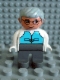 Duplo Figure, Male, Dark Gray Legs, Medium Blue Vest, Gray Hair, Glasses