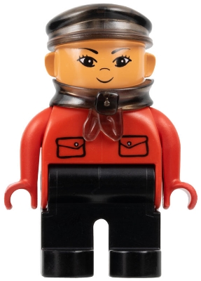 Duplo Figure, Male, Black Legs, Red Top with Pockets (Intelli-Train Red Conductor)