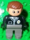 Duplo Figure, Male Police, Dark Gray Legs, Black Top with Zipper, Tie and Badge, Brown Hair