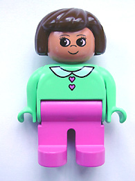 Duplo Figure, Female, Dark Pink Legs, Medium Green Blouse with Heart Buttons, Brown Hair