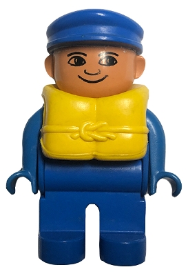 Duplo Figure, Male, Blue Legs, Blue Top, Life Jacket, Blue Cap