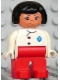 Duplo Figure, Doctor / Medic - Female, Adult Woman, Red Legs, White Top with Buttons and EMT Star of Life Pattern, Black Hair, Nougat Head (75498)