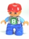 Duplo Figure Lego Ville, Child Boy, Blue Legs, Light Bluish Gray Top with Number 8, Medium Blue Arms, Red Cap, Freckles (6024623)