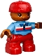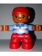 Duplo Figure Lego Ville, Child Boy, Red Legs, Medium Blue Top with Zipper and Blue, Red and White Stripes, Red Cap, Oval Eyes (6179301 / 6233837)