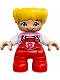 Duplo Figure Lego Ville, Child Girl, Red Legs, Bright Pink Top with Flower on Pocket, White Arms, Yellow Hair (6188842)