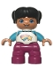 Duplo Figure Lego Ville, Child Girl, Magenta Legs, White and Medium Azure Top with Shooting Star, Black Hair with Pigtails