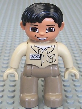 Duplo Figure Lego Ville, Male, Dark Tan Legs, Tan Top, Tan Hands, Black Hair, Brown Eyes (Zoo Keeper)