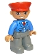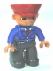 Duplo Figure Lego Ville, Male, Dark Bluish Gray Legs, Blue Jacket with Tie, Red Hat, Smile with Teeth (Train Conductor)