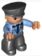 Duplo Figure Lego Ville, Male Police, Black Legs, Medium Blue Top with Badge, Black Hat, Oval Eyes