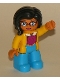 Duplo Figure Lego Ville, Female, Dark Azure Legs, Yellow Jacket, Magenta Top, Black Hair