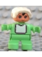 Duplo Figure - Female, Child Baby, Medium Green Legs, Medium Green Top with Bib Pattern, White Bonnet, Nougat Head (75479)