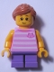 Child - Girl, Bright Pink Striped Shirt with Cat Head, Medium Lavender Short Legs, Medium Nougat Ponytail, Freckles