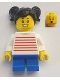 Child - Girl, White Sweater with Red Horizontal Stripes, Blue Short Legs, Black Hair with Pigtails