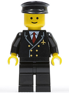 Airport - Pilot with Red Tie and 6 Buttons, Black Legs, Black Hat, Standard Grin
