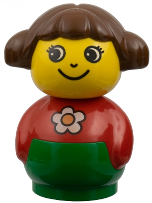 Primo Figure Girl with Green Base, Red Top with Daisy Pattern, Brown Hair