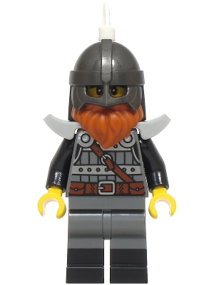 Knight - Male, Dark Bluish Gray and Silver Armor, Black Boots, Pearl Dark Gray Helmet, White Feather, Dark Orange Beard, Light Bluish Gray Shoulder Pads