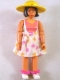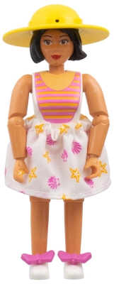 Belville Female, Adult Woman - White Swimsuit with Dark Pink and Light Orange Stripes Pattern, Black Hair, White Shoes, Skirt, Hat, Bows