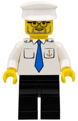 Boat Captain with Blue Tie and Anchor on Pocket, White Hat