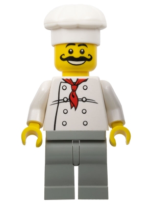Chef - White Torso with 8 Buttons, Light Gray Legs, Long Curly Moustache
