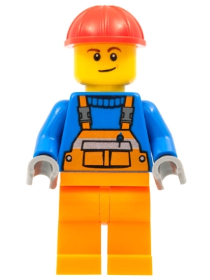 Overalls with Safety Stripe Orange, Orange Legs, Red Construction Helmet, Lopsided Smile