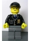 Police - City Suit with Blue Tie and Badge, Dark Bluish Gray Legs, Black Cap