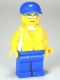 Tank Top with Surfer Silhouette, Blue Legs, Blue Short Bill Cap, Life Jacket Center Buckle, Silver Sunglasses