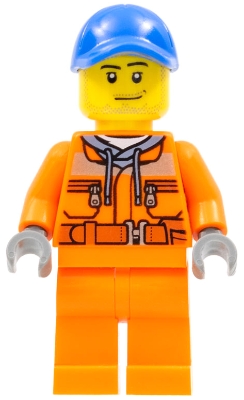 Tow Truck Driver - Male, Orange Safety Jacket, Reflective Stripe, Sand Blue Hoodie, Orange Legs, Blue Cap with Hole, Stubble