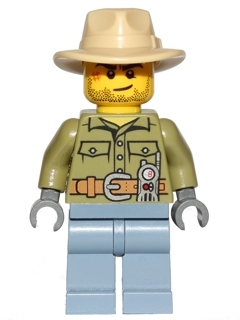 Volcano Explorer - Male, Shirt with Belt and Radio, Tan Fedora Hat, Crooked Smile and Scar