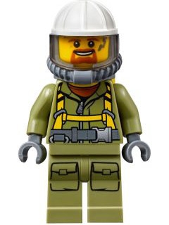Volcano Explorer - Male Worker, Suit with Harness, Construction Helmet, Breathing Neck Gear with Yellow Air Tanks, Trans-Brown Visor, Goatee