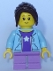 City Bus Passenger - Bright Light Blue Hoodie, Medium Lavender Short Legs, Dark Brown Hair Ponytail Long with Side Bangs, Freckles