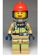 Fire - Reflective Stripes, Dark Tan Suit, Red Fire Helmet, Open Mouth, Breathing Neck Gear with Blue Air Tanks