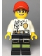 Fire - Female White Shirt with Fire Logo Badge and Belt, Reflective Stripes on Black Legs, Red Cap with Ponytail