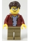 Man, Dark Red Jacket with Bright Light Blue Shirt, Dark Tan Legs, Dark Brown Short Tousled Hair, Sunglasses (Truck Driver)