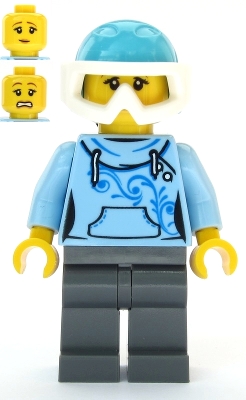 Skier - Female, Bright Light Blue Hoodie, Medium Azure Ski Helmet, Ponytail