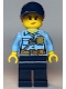 Police - City Officer Female, Bright Light Blue Shirt with Badge and Radio, Dark Blue Legs, Dark Blue Cap with Dark Orange Ponytail, Freckles
