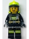 Fire - Female, Black Jacket and Legs with Reflective Stripes, Neon Yellow Fire Helmet, Trans-Brown Visor, Dark Orange Lips