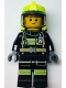 Fire - Fireman Clemmons, Reflective Stripes with Utility Belt, Black Legs, Neon Yellow Fire Helmet, Trans-Brown Visor, Sideburns