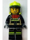 Fire - Male, Black Jacket and Legs with Reflective Stripes and Red Collar, Neon Yellow Fire Helmet, Trans-Brown Visor