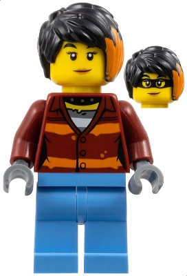 Police Crook - Female, Dark Red Torso with Orange Stripes, Medium Blue Legs, Black Hair with Orange Highlights (Daisy Kaboom)