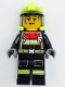 Fire - Female, Black Jacket and Legs with Reflective Stripes and Red Collar, Neon Yellow Fire Helmet, Trans-Brown Visor, Splotches