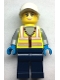 Forklift Driver - Female, Neon Yellow Safety Vest with Reflective Stripes, Dark Blue Legs, White Cap with Bright Light Yellow Ponytail Hair