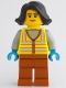 Recycling Worker - Female, Neon Yellow Safety Vest with Reflective Stripes, Dark Orange Legs, Black Hair