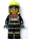 Fire - Female, Black Jacket and Legs with Reflective Stripes and Red Collar, Neon Yellow Fire Helmet, Trans-Brown Visor, Glasses